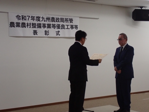 九州農政局農業農村整備事業等優良工事等において受賞しました